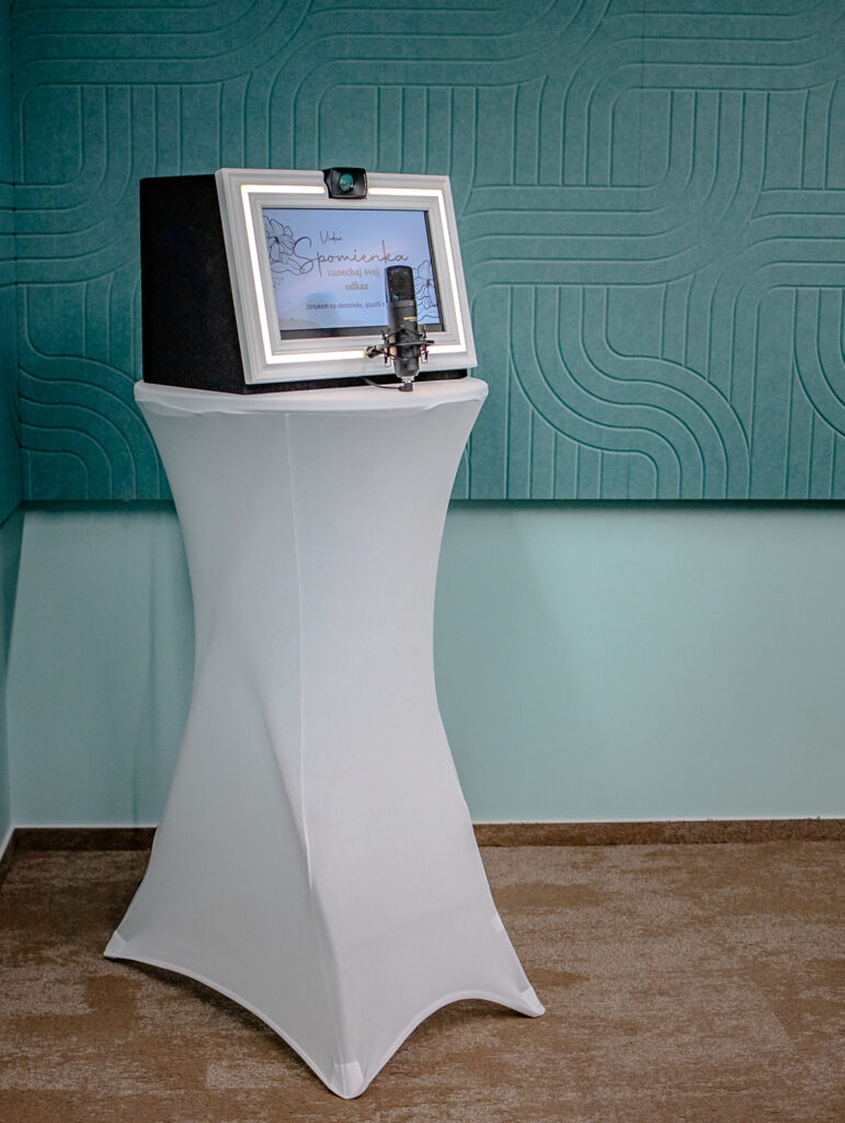 Do priestoru umiestnime elegantnú nahrávaciu búdku, v ktorej môžu hostia nahrať krátke odkazy, pozdravy, priania, vtipy či dojímavé slová pre oslávencov alebo novomanželov. Vďaka pohodlnému a diskrétnemu prostrediu sa ľudia cítia uvoľnene a prirodzene.
